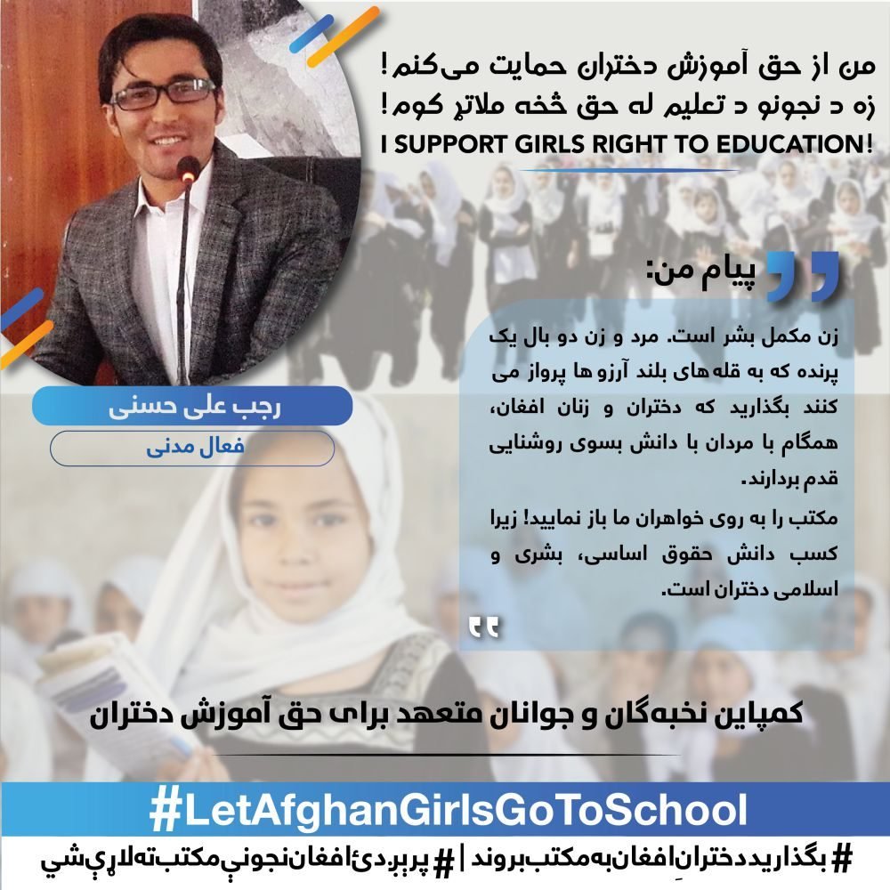 We are extremely happy that youth and elites participated in this nationwide campaign for supporting the right of girls to education.