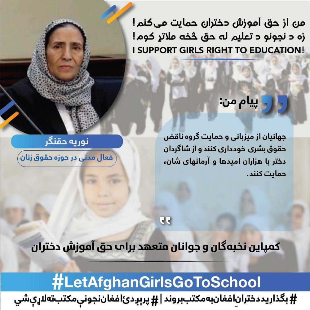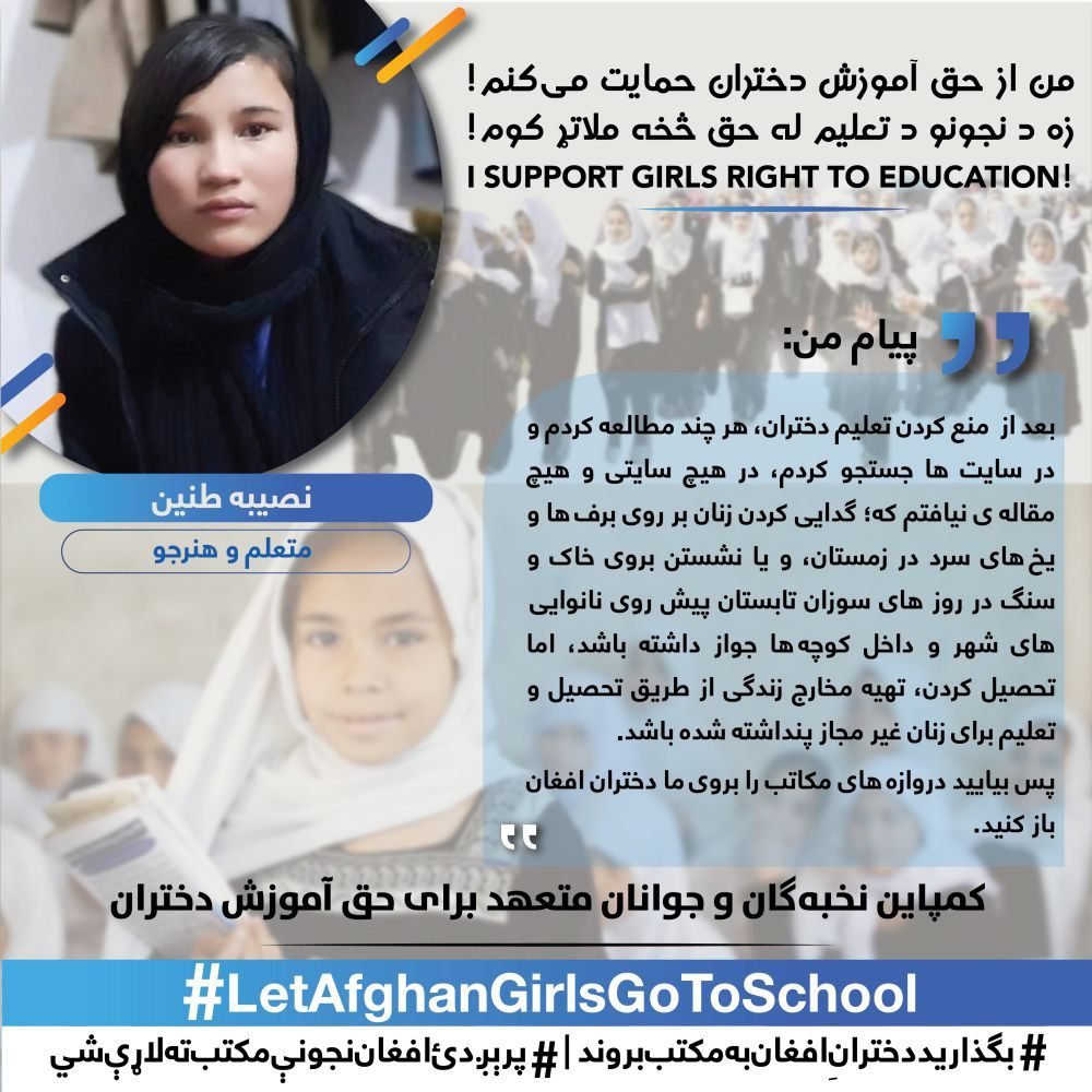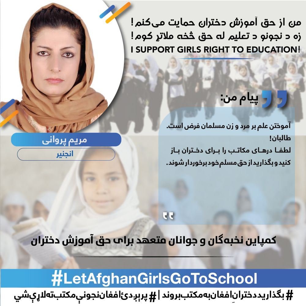The White Assembly, elites and the citizens of the country will continue this campaign to the widest possible way until the realizing of girl’s right to education and returning of girls above the sixth grade back to schools.