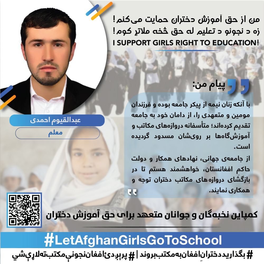We are extremely happy that youth and elites participated in this nationwide campaign for supporting the right of girls to education.