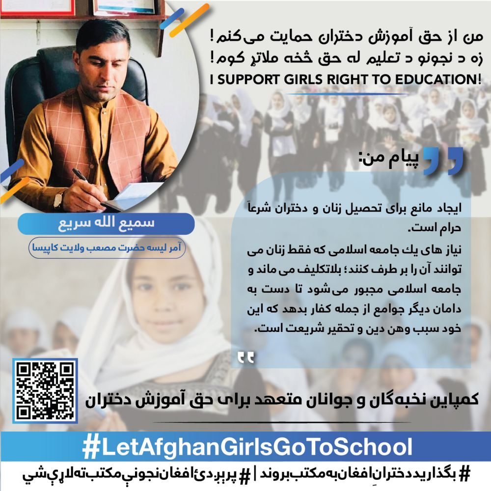 The White Assembly, elites and the citizens of the country will continue this campaign to the widest possible way until the realizing of girl’s right to education and returning of girls above the sixth grade back to schools.