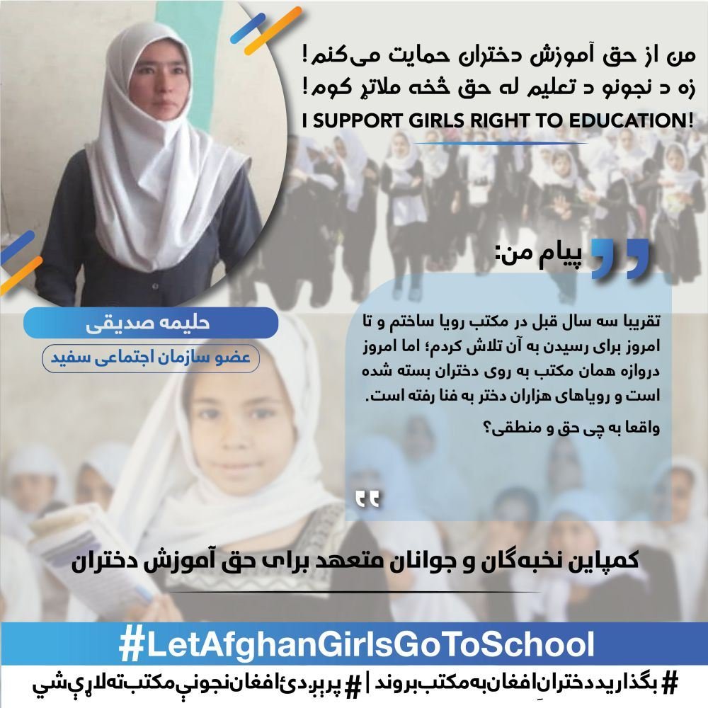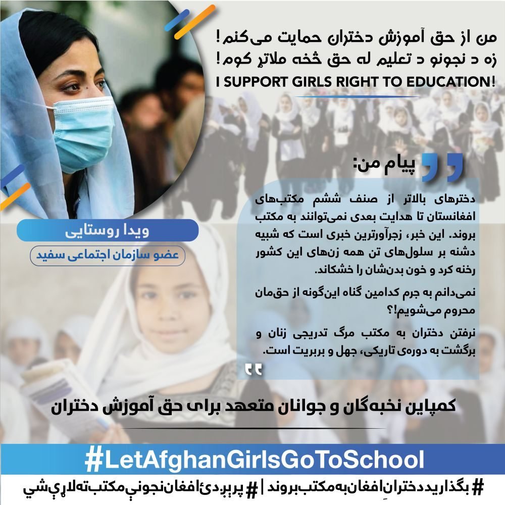 The White Assembly, elites and the citizens of the country will continue this campaign to the widest possible way until the realizing of girl’s right to education and returning of girls above the sixth grade back to schools.