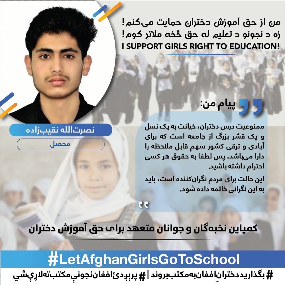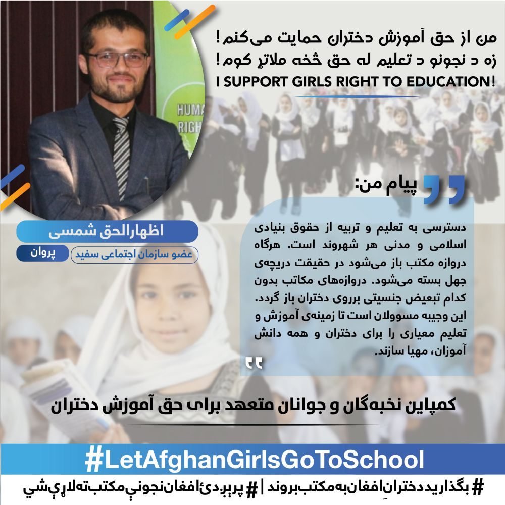 We are extremely happy that youth and elites participated in this nationwide campaign for supporting the right of girls to education.